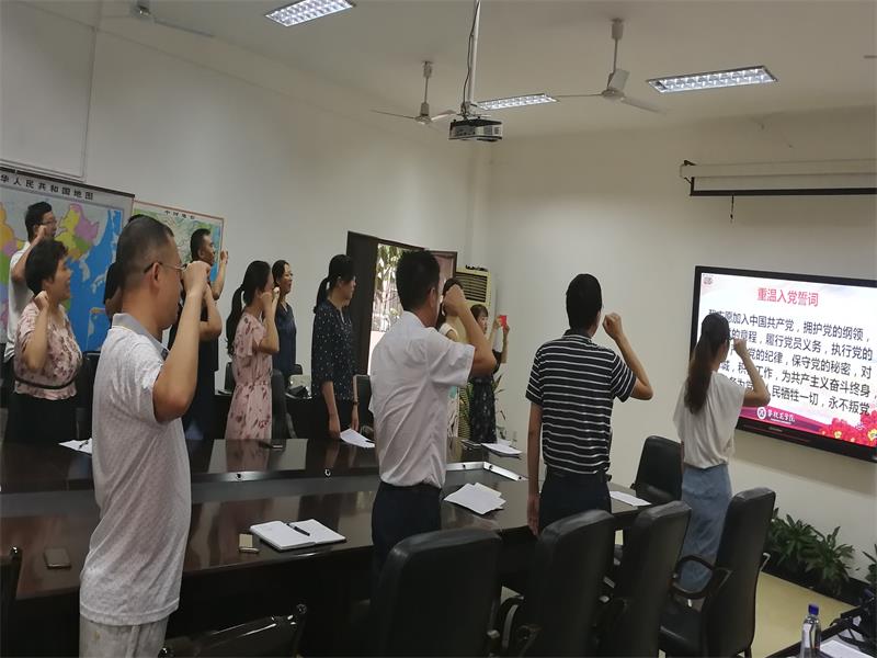 接下来,全体党员同志以饱满的热情在党旗下重温入党誓词,重温入党的决心,坚定对党忠诚的信念。