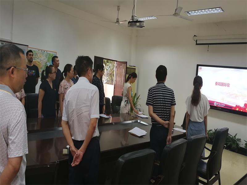 本次活动由三部分构成。首先,活动在铿锵有力的《国际歌》歌声中拉开序幕,党委书记陶睿同志做了主题为“不忘初心、牢记使命”的讲话,要求各位党员同志不忘教育工作者本心,带头做好公司各项工作。