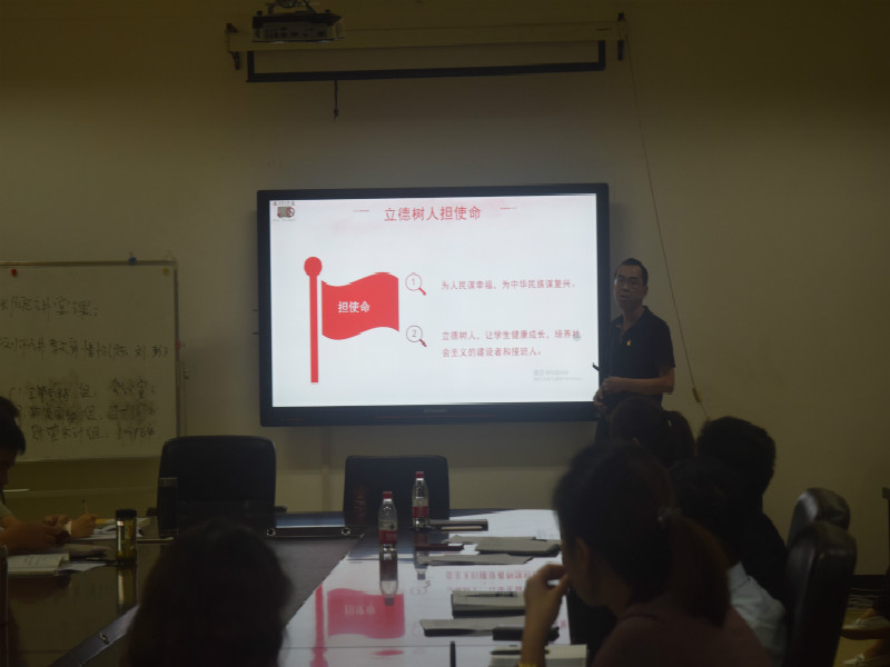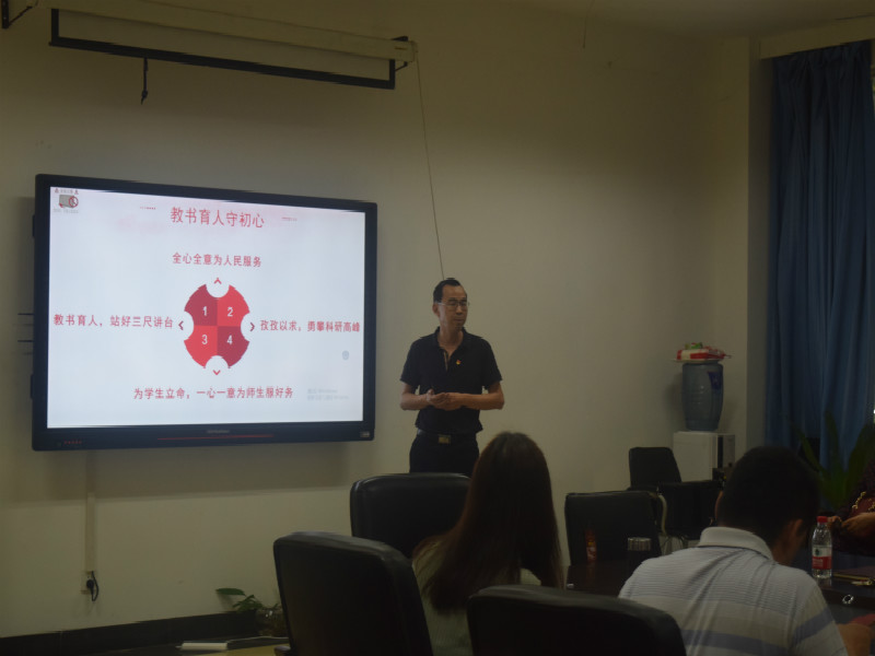 经理张旭辉同志就“教书育人守初心、立德树人担使命、教学科研找差距、潜心问道抓落实”为主题展开今日党课教育。首先在教书育人守初心方面,要求各位教师增强四个意识,坚定四个自信,做到两个维护,并希望全体教师能够教书育人,站好“三尺讲台”;孜孜以求,勇攀科研高峰;为员工立命,一心一意为师生服好务。其次在教学科研找差距方面,张旭辉同志带领同志们从以员工为中心的公司产品体系、科研、申硕、更名等方面一一找公司所存在的差距,希望同志们把工作转化为内心的热爱,把个人的小爱转化为对员工的大爱,在工作中发扬精益求精的工匠精神和守时准时的诚信品德。最后,在抓落实方面,张旭辉同志从公司出发,在修订人才培养方案、制定专业基础课实施计划、推动国家社科自然基金项目申报等方面做出了工作要求。