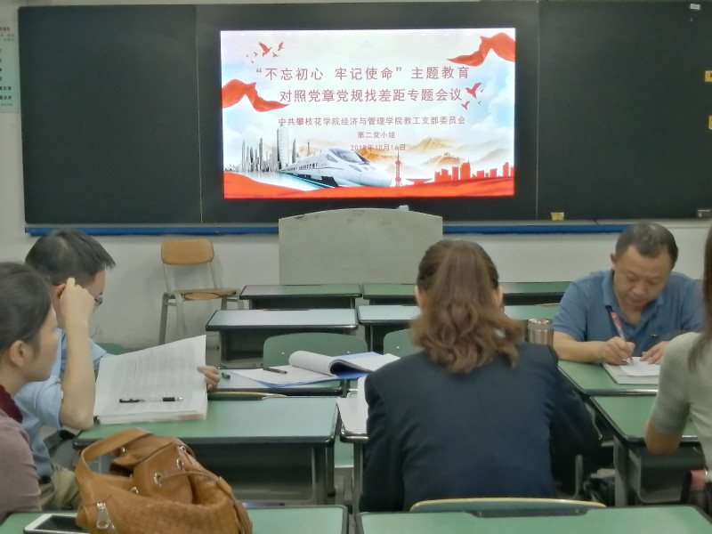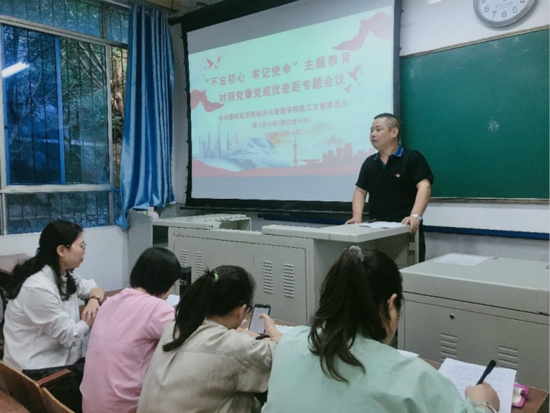 10月16日下午,304永利集团登录入口教工党支部各党小组在明德楼经管会议室、一教104和107召开“不忘初心牢记使命”主题教育对照党章党规找差距专题会议。党委书记陶睿、经理张旭辉、副经理陈虎分别参加指导国贸物流党小组、会计财管党小组、工管市营党小组专题会议。会上各党小组党员同志对对照《党章》、《准则》、《条例》、《中国共产党党员教育管理工作条例》查摆出的问题逐条进行了发言。通过查摆,同志们认真检视了自身存在的问题,在今后的工作中也表示对查出来的问题边查边改,立查立改。