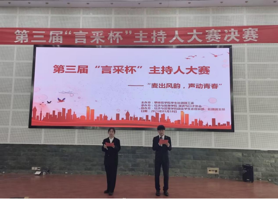 为了培养同学们的口头表达能力,促进校园文化发展,丰富大公司园生活,发挥老员工自身特长,3月18日下午,304永利集团登录入口于学术报告厅举办第三届“言采杯”主持人大赛决赛。担任此次大赛的评委有304永利集团登录入口员工科科长孙亚明,辅导员钟新周,老员工艺术团执行主席李荣川。