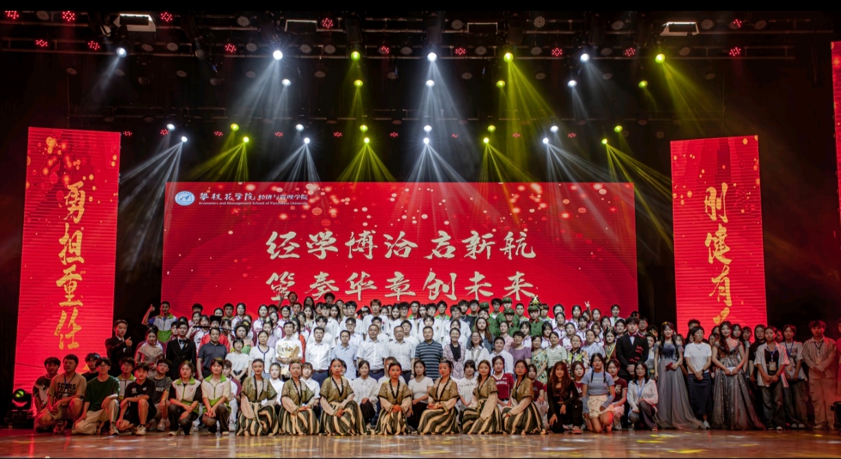 晚会在全体经管学子活力四射的集体歌舞《Good time》中激情开场,迅速点燃现场气氛。歌曲《我记得》以其深情旋律触动人心,朗诵《青春中国》与民乐演奏《万疆》则以激昂的言辞和悠扬的音符,激发了在场每一位听众的爱国情怀与青春回忆。特别值得一提的是,话剧《奋战成昆》通过生动再现攀枝花三线建设的历史瞬间,让观众深刻感受到前辈们的奋斗精神与家国情怀。穿插于节目间的抽奖环节更是将晚会推向一次次高潮,同学们的积极参与和热情互动,展现了青春的活力与期待。而舞蹈《Drama》以其独特的创意与精湛的表演,成为晚会的一大亮点,赢得了阵阵掌声与喝彩。小品《军师恋盟》凭借幽默风趣的剧情与演员们的精彩演绎,令现场笑声不断,掌声雷动。从《蒲公英的约定》的温馨旋律,到《伞舞丹青》的古典韵味,再到《sun boy》、《华裳之韵》、《Sheesh》等节目的现代与传统交融,晚会以多元化的艺术形式,为观众呈现了一场视听的豪华享受。最终,在经管师生满怀深情的合唱《再见》中,晚会缓缓落下帷幕,表达了对毕业生深深的不舍与美好祝愿。