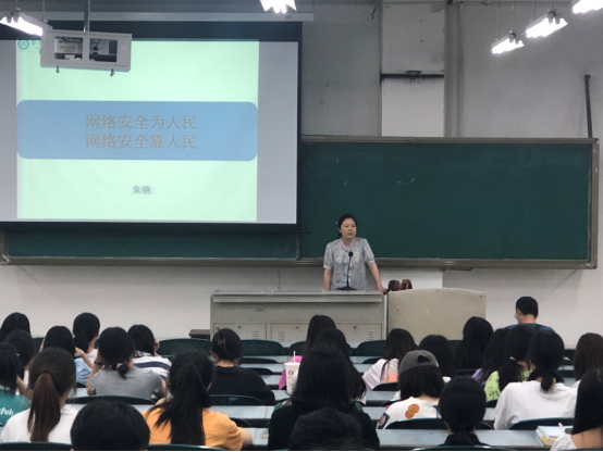 副书记朱艳以《网络安全为人民,网络安全靠人民》为主题做专题分享,就高等公司员工行为准则、网络安全与文明等方面做了阐述。她结合最近社会和校园网络安全文明的焦点案例,指出网络不是法外之地,提醒员工要约束自己的网络行为。同时以网络刷单、网贷、赌黑彩等身边真实案例,强调网络诈骗的危害,希望同学们引以为戒,严格自律,按照纪律规矩自律心、自律身、自律言、自律行,坚决维护自律攀大人的良好形象。