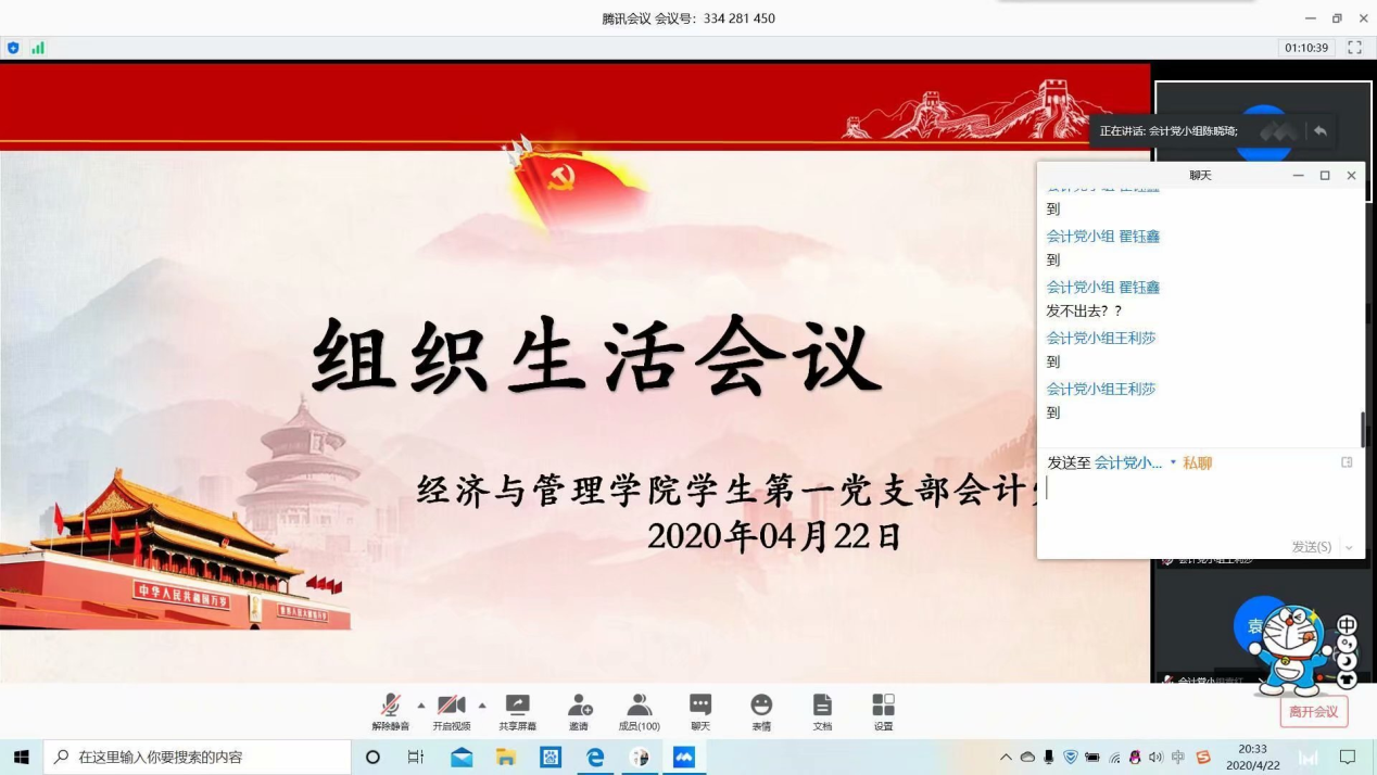 4月22日晚,304永利集团登录入口员工第一党支部财管党小组、会计党小组分别在线上举行了组织生活会,员工第一党支部全体同志参加了此次会议。