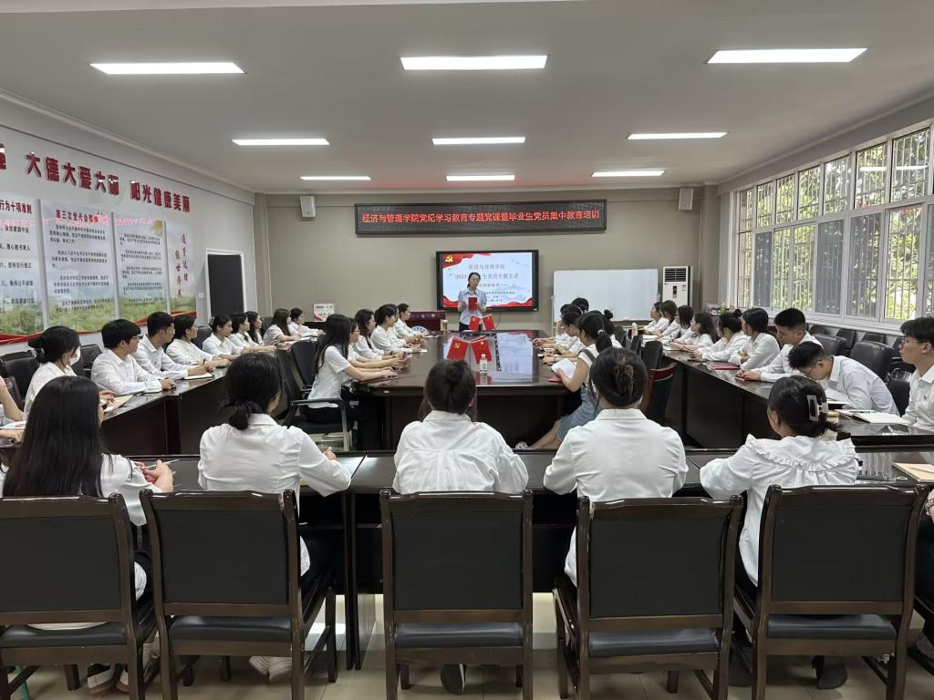 陶睿书记指出,坚强的党性、优良的作风、严明的纪律是中国共产党的鲜明特点。新时代青年是实现中华民族伟大复兴的先锋力量,要明确历史方位,不断增强责任感和使命感。随后给毕业生党员提出几点要求:一是锤炼党性,修好“必修课”,日日相继、久久为功,拧紧理想信念这个“总开关”,永葆共产党人的政治本色;二是恪守党纪,系紧“安全带”,守住底线、远离红线,形成遵规守纪的高度自觉,走稳走实人生“每一步”;三是砥砺作风,争当“排头兵”,向下扎根、向上生长,在为民服务的赛道上奋勇争先、在中国式现代化中挺膺担当。