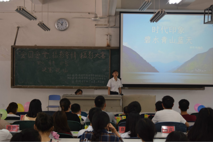 在比赛中,每组参赛人员用PPT与演讲相结合的方式展示他们心中的“时代·青年·印象”。中场休息环节,进行有关摄影与党知识竞赛互动。最后,艺术公司唐柱老师对本次大赛进行点评。
