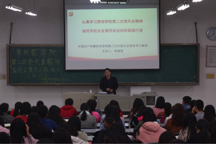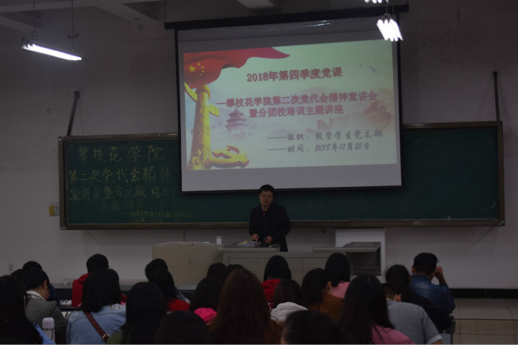 为更好宣传公司第二次党代会精神,公司于2018年11月27日晚在二教2-5教室举办公司第二次党代会精神宣讲会暨分团校培训主题讲座。由公司员工第一党支部教师书记兼公司分团委书记胡遵程老师主讲。讲座主题是:认真学习贯彻公司第二次党代会精神,做同公司共发展同命运的积极践行者。公司员工党支部员工、团委员工会员工共计200余人参加讲座。