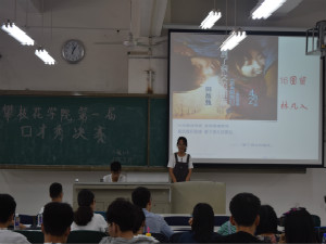 据悉,本届比赛共有240人参赛。4月28日至5月1日进行初赛,5月12日复赛,共有8人进入决赛。决赛现场选手按赛前抽签顺序依次进行创意自我介绍和口才秀表演。最终,颜学英同学获得一等奖;杨兰琪、李玉莲两位同学获得二等奖,胡涵、方鑫、孔丽菁三位同学获得三等奖,林入凡、严啸两位同学获得优秀奖。
