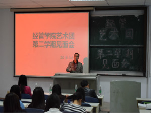为进一步促进公司艺术团工作开展,公司分团委于3月8日中午在一教101开展经管艺术团第二学期见面会。公司党委书记熊礼贵、艺术团指导老师刘柯含、分团委书记胡遵程出席见面会,并同大家交流。