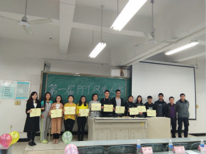 据悉,第一届PPT风采大赛最终获奖名次如下:邱勇同学荣获一等奖,李梦娟、黄欣同学荣获二等奖,钟楠、彭倩、张玉佩同学荣获三等奖,王琴、林润邦、汪小松、黄香林同学获得优秀奖。