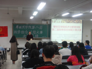 张帆老师致辞,他希望同学们能够赛出水平、赛出风采。决赛共两个部分:第一部分为实操赛:登记记账凭证、珠算、点钞。第二部分为财务知识竞赛。经过激励对决第14组(汪浩月、余莉洁、庞宇欣)获得一等奖;第2组(缪铠羽、王沁怡、蒋兴)获得二等奖;第6组(陈红、赵函阳、向思静)获得三等奖;第7组(缪莹、刘昕伟、于金平)、第8组(肖惠、何婷婷、罗英)、第11组(郑雨洁、曹煜、周倩)获得优秀奖。