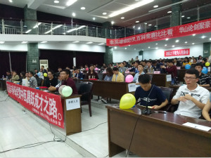 决赛在图书馆学术报告厅进行,出席决赛的嘉宾有:公司教研科科长陈芳、工商管理教研室主任李自荣、公司分团委书记胡遵程。