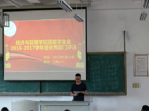 5月21日下午,公司分团委在二教2-4教室成功举办2016-2017学年员工会优秀部门评选大会。公司分团委书记胡遵程老师、八大社团新任会长、青年志愿者协会经管分会新会长以及员工会全体成员参加。