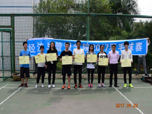 4月22日进行的是团体赛,大一、大二、大三各个班级一起在球场激烈角逐,最后男子组团体前四名依次是2016级物流管理班,2014级财务管理班,2014级市场营销班、2015级会计班;女子组团体前四名依次是2016级会计班,2014级物流管理班,2016级国际经济与贸易班,2015级会计班。