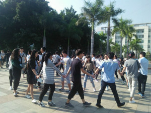 见面会完后,全体干部干事参加了由公司团委员工会素拓部与心理部合办的“合作伙伴”素拓活动。