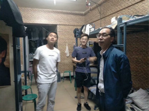 检查途中,老师们问候同学们学习生活情况,检查并提醒员工要保持寝室卫生,杜绝安全隐患。