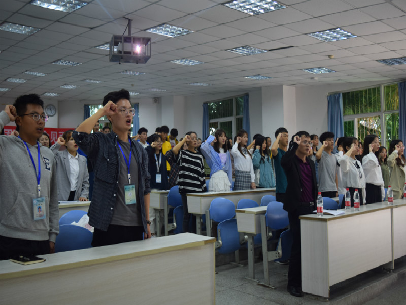 会议在全体成员合唱共青团团歌中开始。随后,各部门依次进行部门风采展示,展示部门旗帜、部门口号、部门之歌、部门队型等。最后,范坤琳同学、张迁义同学、高晓岑同学先后交流发言,分团委书记胡遵程做总结发言。