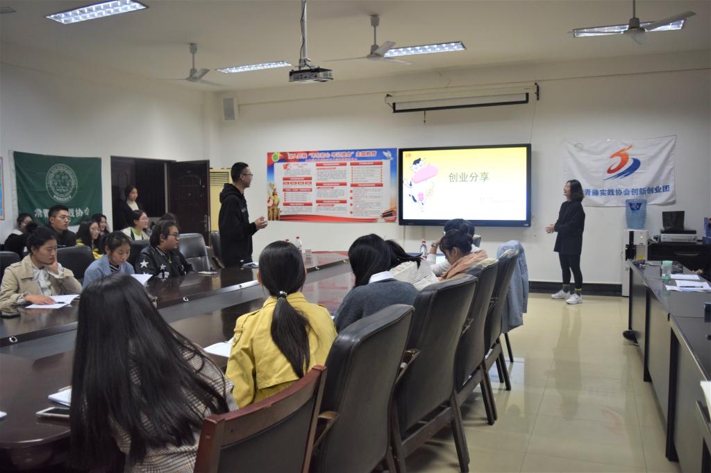 王杰同学讲述自身创业经历,对部分创业项目进行简单介绍,并分析创业环境、创业政策,介绍优秀创业员工,鼓励同学们坚持不懈,努力实现自己的创业理想。