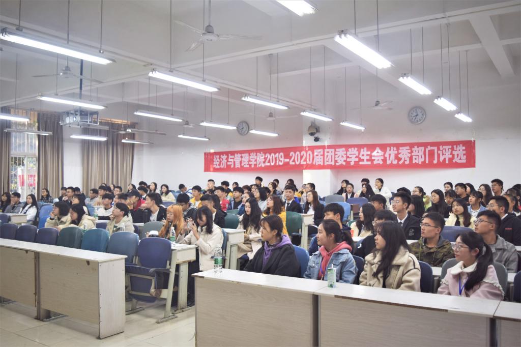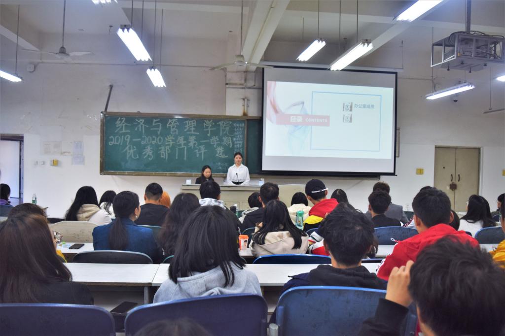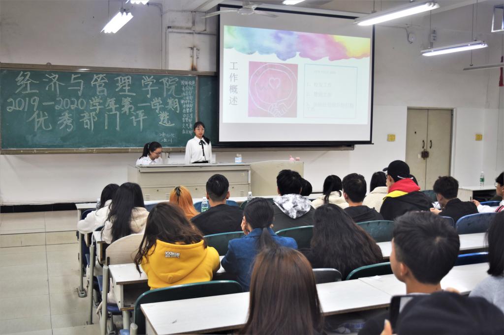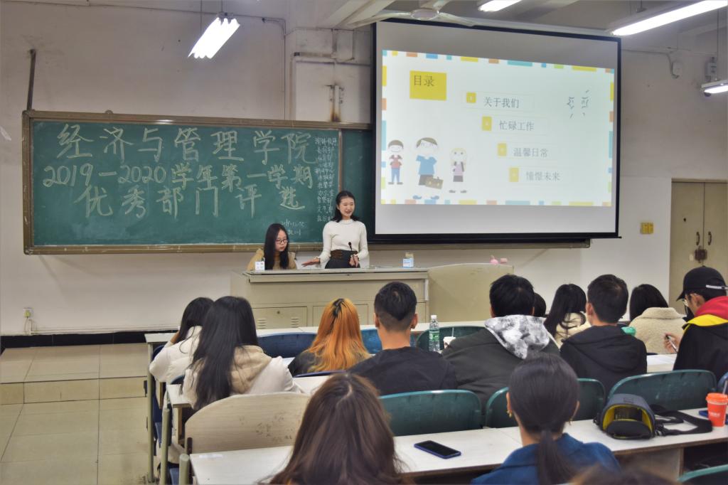 评选会上,各部门依次上台对部门简介、部门建设、部门工作、未来展望等方面进行PPT风采展示。随后,胡遵程对本学期团学工作概况进行总结,他希望304永利集团登录入口团委员工会各部门能在总结中吸取经验,相互沟通,加强创新,也希望同学们正确处理学习、工作和生活。