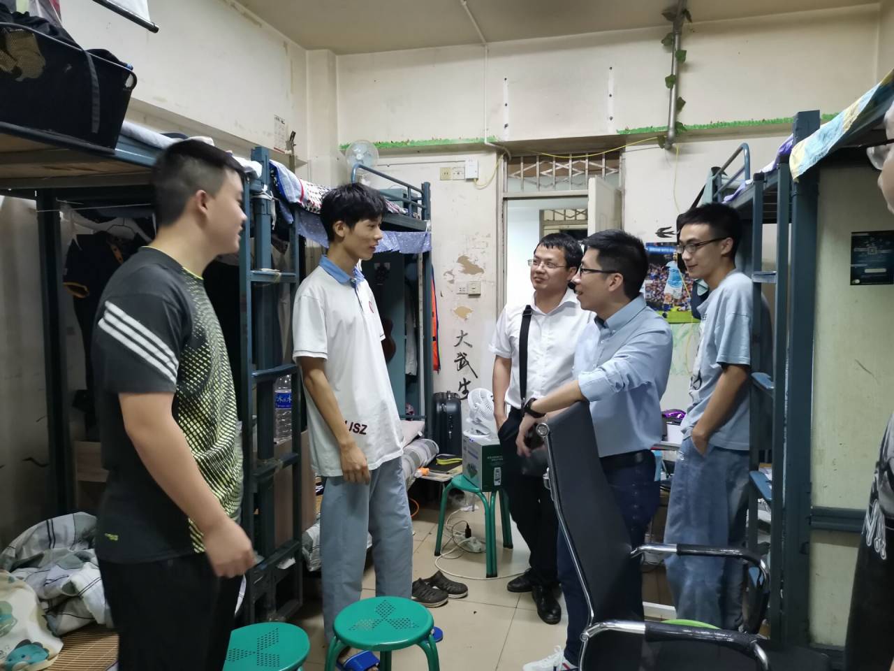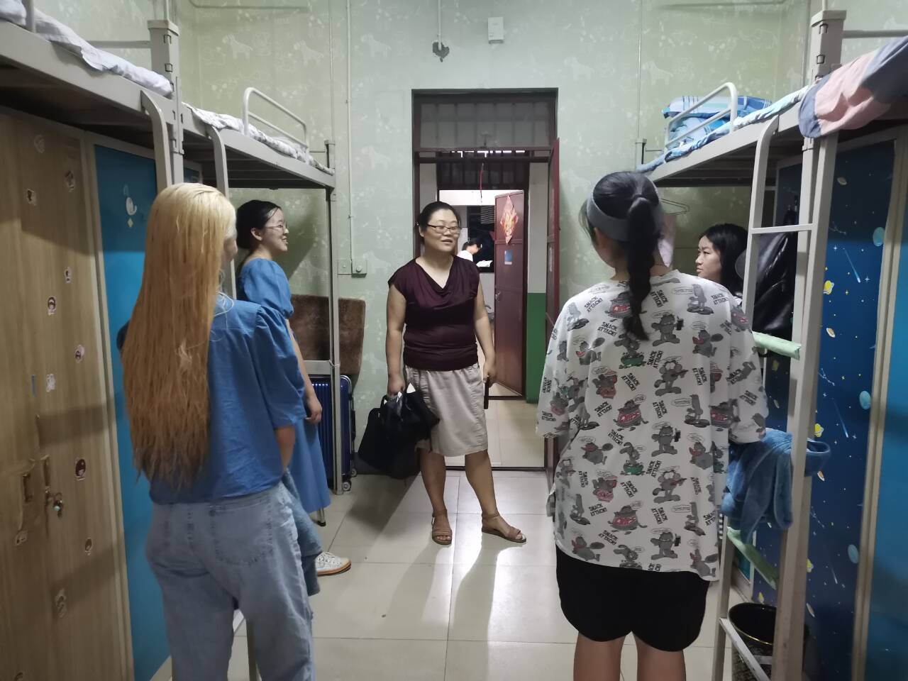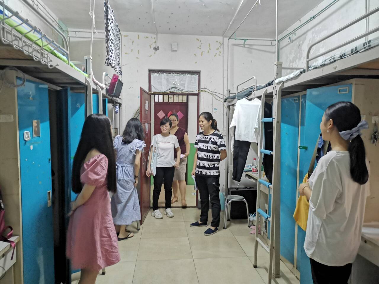 走访过程中,公司老师细心询问每一位新生的宿舍生活情况,针对日常生活、学习方面提出建议,并叮嘱同学们在疫情期间要经常开窗通风,保证空气流通,注意个人卫生和作息规律。同时提醒员工杜绝使用违规电器以及其他违禁物品,保障生活学习安全。