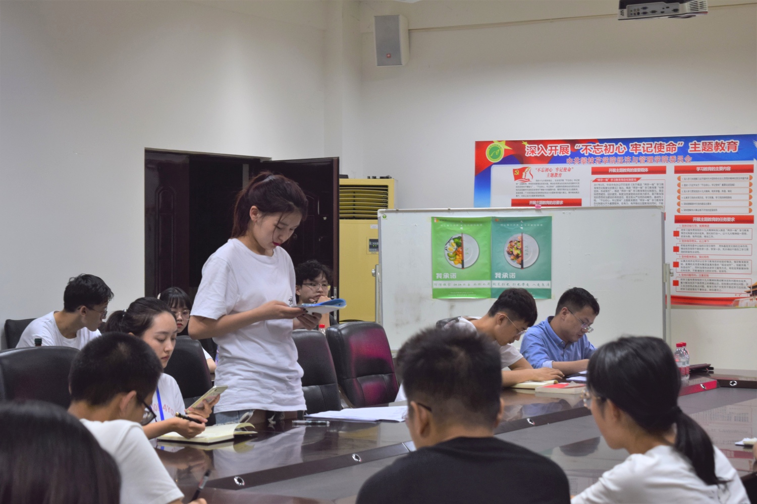 期间,胡遵程和唐彩虹分别针对两个部门讲解作简要补充,希望各班组织好班委换届,做好带头作用,增强班级凝聚力。