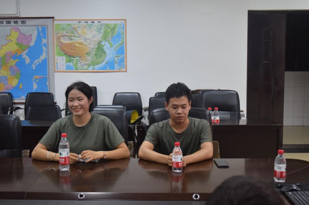 5位退役复学老员工依次进行自我介绍后,胡遵程老师一一询问同学们退役复学后学习情况、生活状况、贫困生认定、奖助学金申报等,对同学们的关切一一回应。希望同学们继续保持良好习惯、优良作风,带动和影响身边同学。邀请5位退役复学老员工进入班级开展征兵宣传,分享军营生活,号召更多的同学们应征入伍。