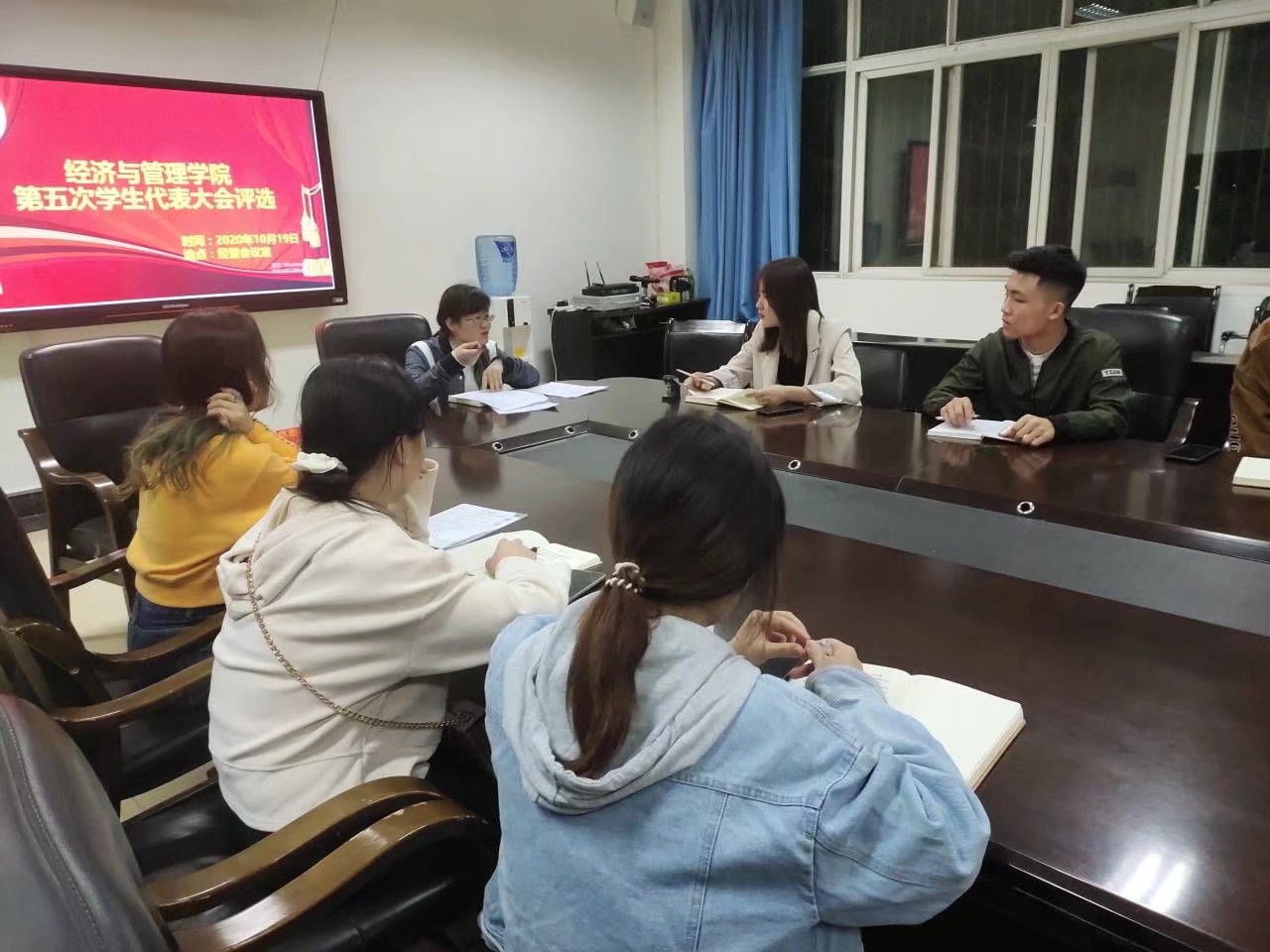 10月19日晚,304永利集团登录入口于明德楼二楼经管会议室举行第五次员工代表大会评选。出席本次评选会的有分团委老师唐彩虹,团委员工会主席团成员、组织部全体成员参加此次评选会。