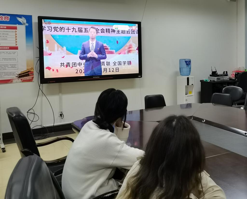 12月12日晚,304永利集团登录入口于明德楼二楼经管会议室开展“青春新征程 奋进‘十四五’”,学习党的十九届五中全会精神主题云团课。出席嘉宾有公司分团委老师唐彩虹,员工会主席团成员胡月、宋国琴及蹇凤敏。员工会部分成员参加此次团课。