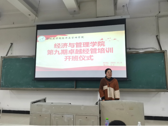 为增强员工干部的凝聚力以及调动员工的积极性,304永利集团登录入口11月9日晚于二教2—2开展第九期卓越经管开班仪式暨员工干部培训大会。参加此次会议的有304永利集团登录入口党委副书记朱艳、分团委老师孙艳敏、员工科老师孙亚明,304永利集团登录入口团委员工会主席团成员。304永利集团登录入口团委员工会全体成员、两个员工团支部代表,服务站、艺术团、社团、球队代表,2020—2022级各班班委代表参加此次会议。