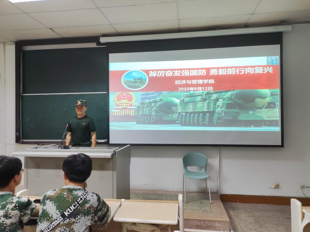 为全面贯彻习近平强军思想,推进新时代强军事业,鼓励在校生应征入伍,服务国防建设,9月12日晚,304永利集团登录入口于一教108开展国防教育活动。参与此次活动的有员工科科长孙亚明,公司武装部石金锋老师,老员工退伍教官欧阳,部分2023级新生。