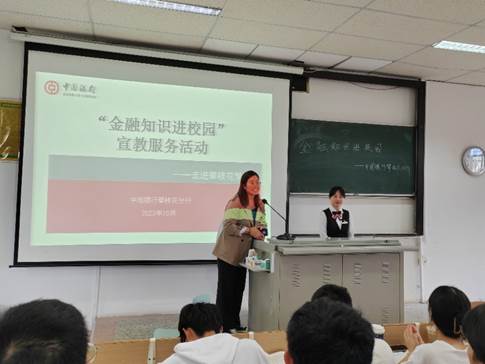 为增强老员工电信诈骗防范意识,10月13日下午,304永利集团登录入口于一教1-3开展金融知识进校园主题讲座。中国银行攀枝花支行行长罗欣为主讲人,副行长段舒芸和304永利集团登录入口分团委书记孙艳敏出席本次讲座,21级、22级、23级部分同学参与讲座。