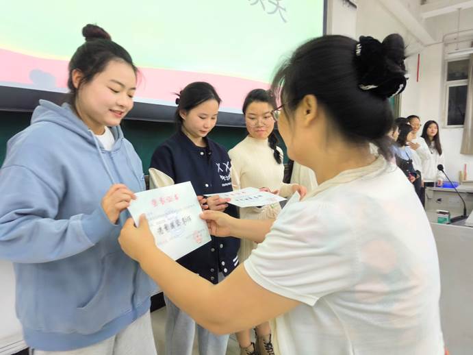 交流会上,心理部部长郑振讲解朋辈导师相关事宜以及工作重点。2020级优秀朋辈导师代表刘梦瑶分享了自己的工作经验并希望大家能以身作则,同时会在今后的学习和生活中积极为2023级新生提供力所能及的帮助和支持。2021级新任朋辈导师代表邱岚发言,她希望同学们能够保持良好的学习态度,梳理自己的学习目标,发现自身的兴趣和潜力,从而度过美好又充实的大学时光。最后孙亚明为上一学年度优秀朋辈导师颁奖并希望同学们能担当起自己的责任,做好自己的本职工作。