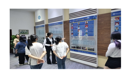 同学们在工作人员的带领下进入校史馆,目之所及的一段段文字、一张张照片皆是公司辉煌历史。工作人员的讲解让同学们更深入地了解优秀员工事迹、办学历程等公司历史。他们驻足停留,或用眼睛临摹文字,或用手机记录场景,去了解、欣赏校史馆的陈列内容。