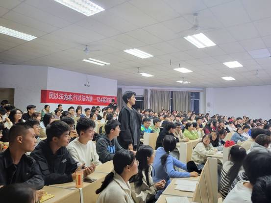 杨新科讲解了宪法的概念,用问答形式带领同学们了解宪法的历史背景、基本原则以及宪法与公民的关系。唐珊等分别通过还原现场等多种形式,为同学们进行普法学习。王一茹介绍宪法的主要内容以及宪法与日常生活的联系,并对同学们如何学习宪法进行了具体指导。