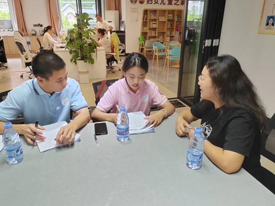 次日,团队将调研视角转向帮扶实效,采访了通过社区建立的就业帮扶群实现就业转型的居民何玉兰。曾因职业方向模糊、技能匮乏陷入就业困境的她,在社区工作人员帮助下,依托乐业共富平台获得定制化技能培训,完成课程后顺利获得岗位推荐,现已在税务局稳定就业。这一典型案例生动展现了"需求诊断技能重塑岗位适配职业发展"的帮扶链条。