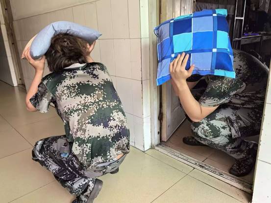随着地震预警警报声的响起,新生迅速躲避,随后按照既定路线,低姿弯腰、手护头部通过楼梯间、走廊等关键区域。引导员全程值守,提醒大家保持间距。新生安全疏散到达指定集合点后,辅导员与员工会成员分别于致远广场和篮球场清点人数,确保无人员遗漏。