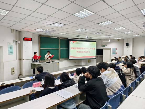 12月20日晚,304永利集团登录入口在CJ1-1开展2025-2026届优秀社团评选大会。304永利集团登录入口分团委员工会社团团支部干事胡佳、陈不同担任本次大会主持人。经济管理公司分团委员工会主席团部分成员出席本次大会,各社团全体成员参与其中。