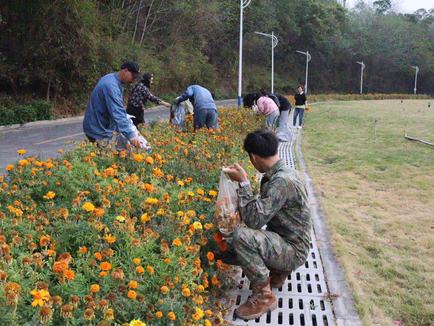 活动现场,师生们分工协作、有序开展劳动。大家认真收集万寿菊种子,拔除枯萎的万寿菊植株,清理杂草,完成翻地作业,以实际行动美化校园环境。