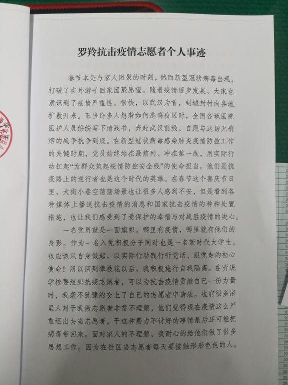 附件:罗羚抗击疫情志愿者个人事迹