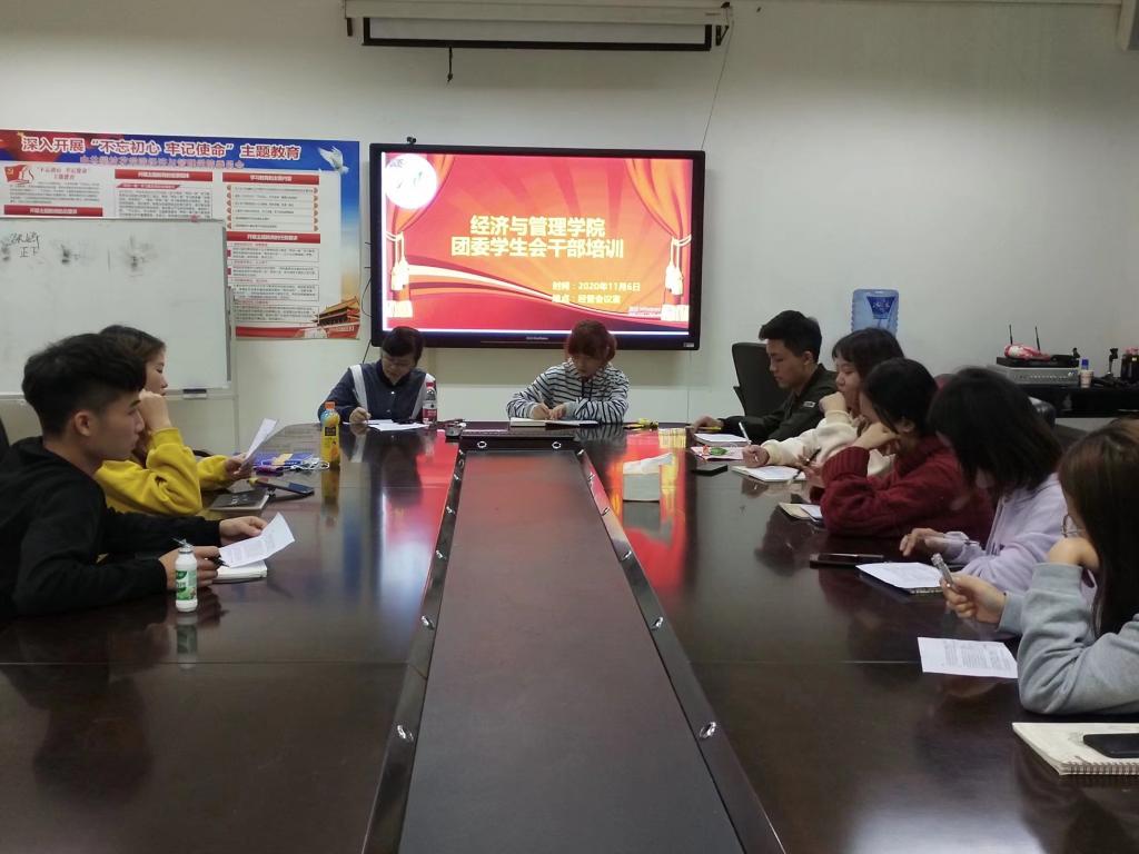 11月6日晚,304永利集团登录入口与明德楼二楼经管会议室开展团委员工会干部培训会。公司员工科老师胡遵程、分团委老师唐彩虹、员工会全体干部参与此次培训会。