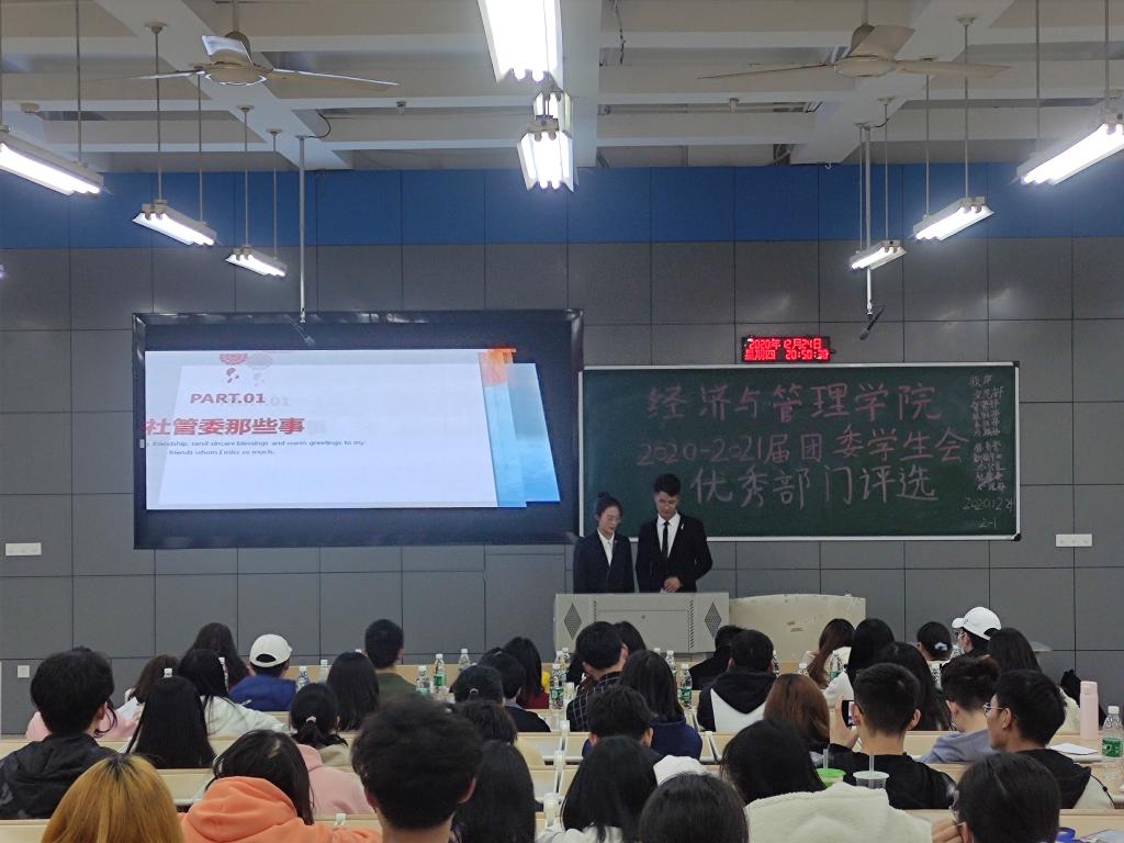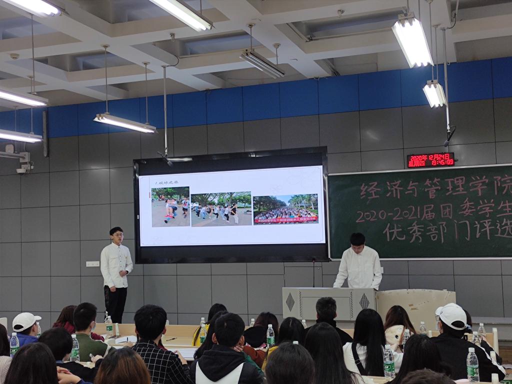 12月24日晚,公司开展2020-2021届团委员工会优秀部门评选活动。出席本次活动的有员工科老师胡遵程,分团委老师唐彩虹。员工会全体成员、各社团、党支部以及各班级代表参加此次活动。