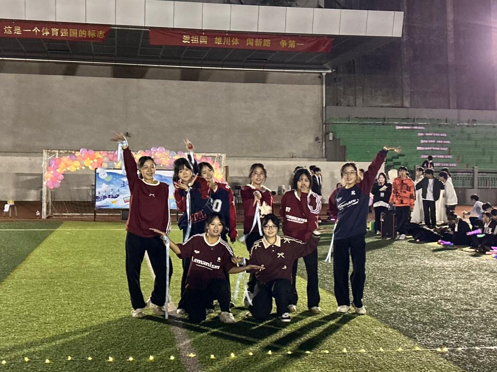 比赛现场,各班依次登台展示。比赛节目形式丰富多样,涵盖了舞蹈、合唱、光影秀、小品等多种类型,充分展现了同学们的才艺和创意。同学们热情高涨,在舞台上活力四射,用精彩的表演诠释了青春的活力与激情。中场休息时,抽奖环节和随舞活动将现场气氛推向高潮。比赛下半场,艺术团成员们也为大家带来了精彩绝伦的表演。活动结束后,同学们在操场上合影留念。比赛的最终结果为: