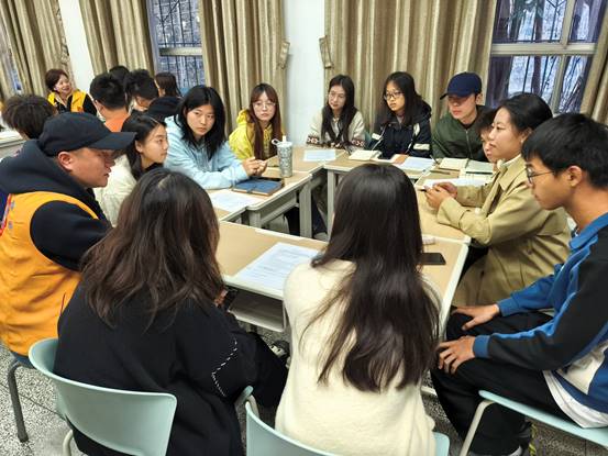 培训后半场,全体同学分组进入1-1031-104,开展职业论坛圆桌分享和无领导小组面试环节。在职业论坛圆桌分享上,志愿者们耐心地答复同学们提出的问题,让同学们获得新鲜、具体、有关企业或领域特色的信息;在无领导小组面试环节中,同学们积极参与讨论,充分展现了各自团队协作能力和思维能力。随后,五位同学上台分享自己在无领导面试环节中的感悟。朱艳代表全体同学向中国狮子联会四川代表处的志愿者们表达了诚挚的感谢,并呼吁同学们向志愿者们学习。最后,全体人员合影留念。