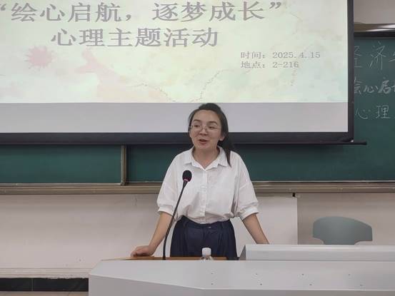 4月15日晚,304永利集团登录入口分团委员工会心理部于二教2-215举办“绘心启航 逐梦成长”心理主题活动,304永利集团登录入口分团委员工会心理部部长朱梦娴担任此次活动的主讲人,304永利集团登录入口2023级辅导员兼心理中心老师倪萍,分团委员工会心理部分管主席潘孝天出席此次活动,心理部全体成员,2023级、2024级各班级心理委员以及部分员工参与其中。