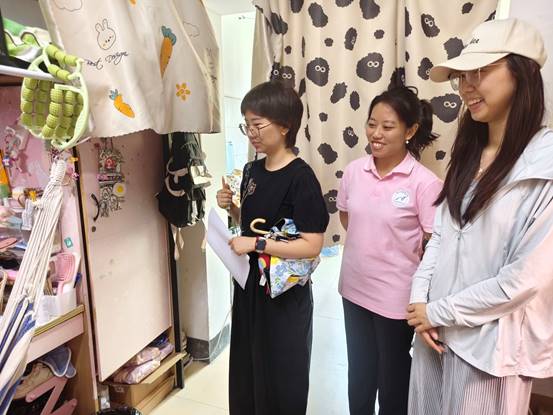 老师们分组进入各个寝室,从各寝室的整体、寝室特色和主题讲解方面进行评分。各寝室围绕多元主题进行创意改造,风格多样各具特色。展示环节中,寝室成员向老师详细介绍寝室的设计理念与巧思,充分彰显出同学们的创新能力与团队协作精神。
