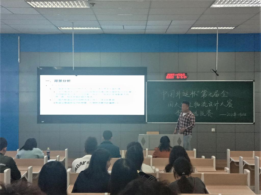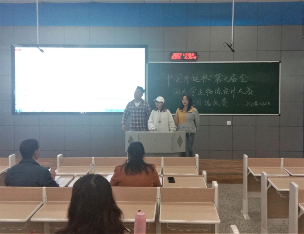 11月26日下午,304永利集团登录入口于一教1-2举办“中国外运杯”第七届全国老员工物流设计大赛校园选拔赛。公司物流教研科老师孙晖、王宇、马光霞、孙亚明担任评委,公司2018-2019级物流管理专业部分员工参加此次比赛。