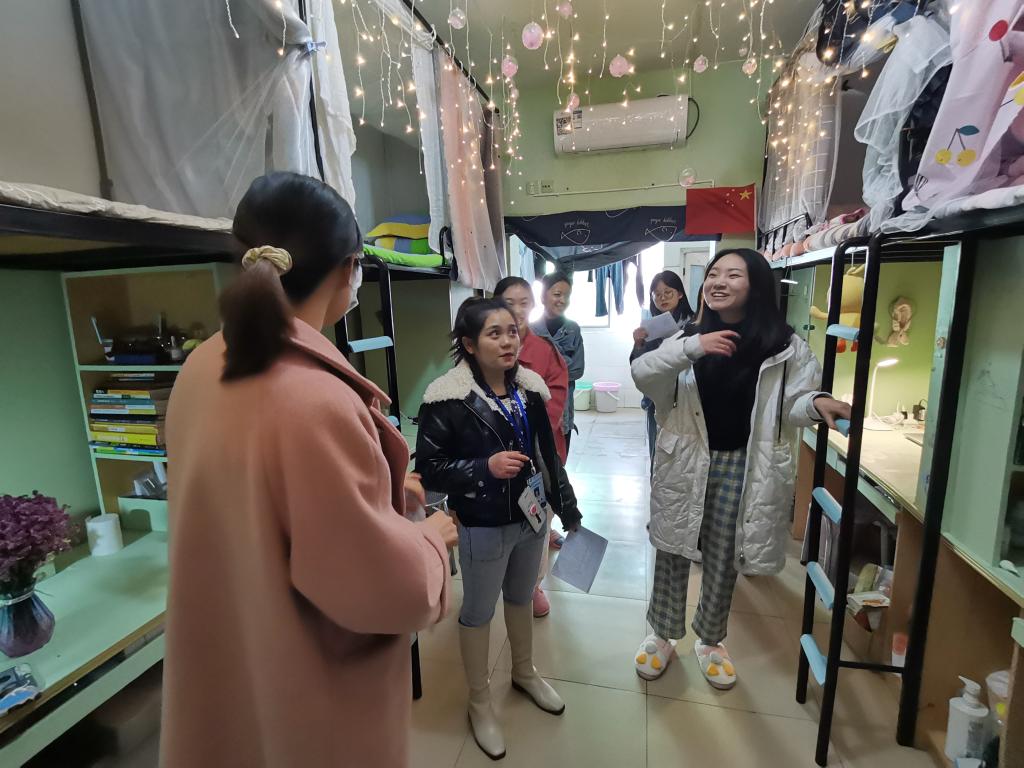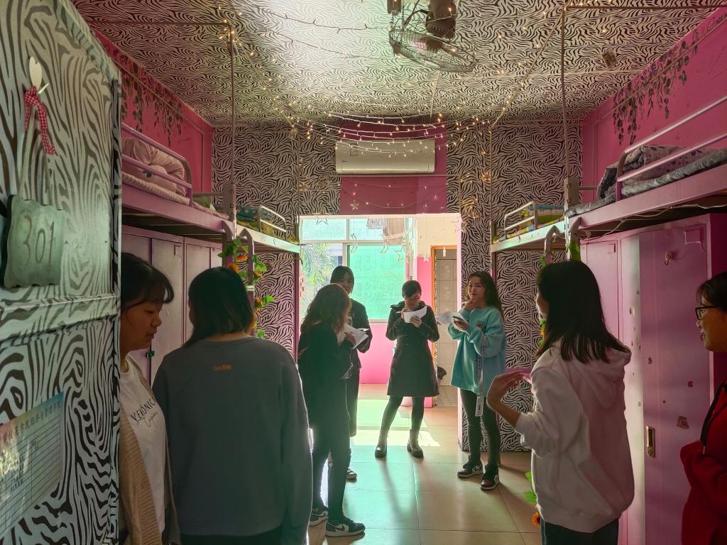 本次比赛分为初赛、决赛。在经过初赛的筛选后,共有18间寝室进入决赛。决赛采用线上投票与现场评分结合的方式进行。此次比赛,参赛选手围绕主题认真装扮寝室,充分展现出优良的寝室文化氛围。在现场评分中,各评委依次进入决赛寝室进行评查,同学们积极向评委解说设计创意及理念,得到评委的一致好评。期间,参赛员工们虚心听从老师的建议,以便之后将其进行完善。最后,各评委根据寝室设计、环境卫生、设计理念解说等方面进行打分,评选出最优寝室。