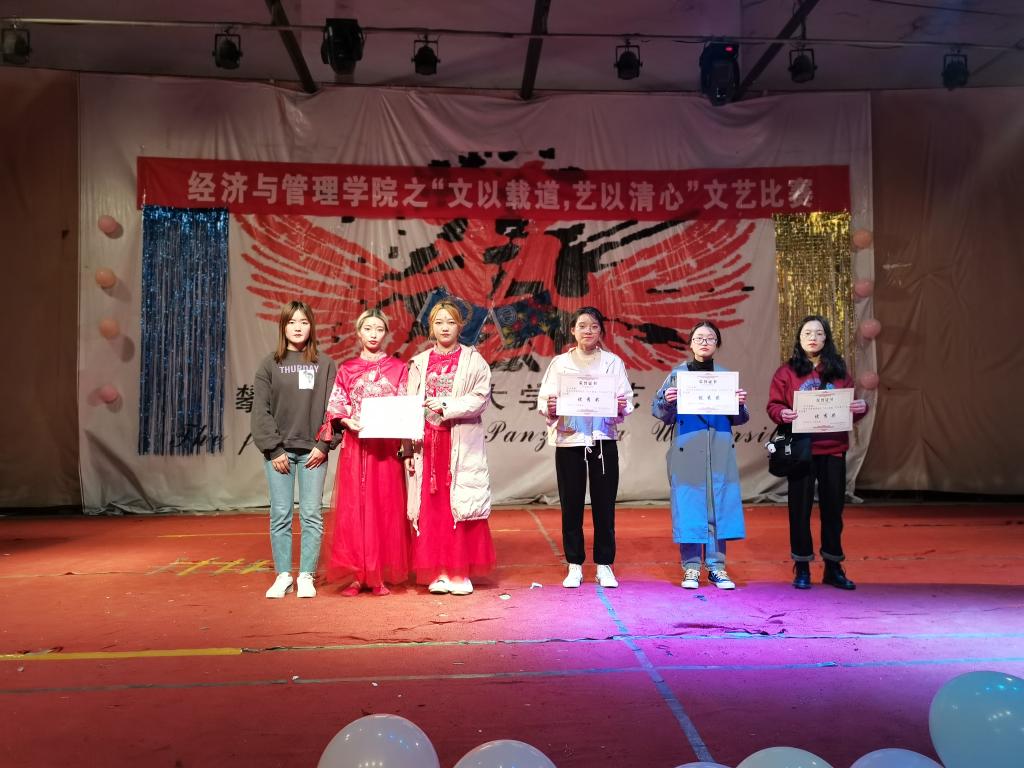 12月6日晚,由公司员工会文艺部承办、组织部协办的“文以载道,艺以清心”文艺比赛决赛于员工活动中心举行。此次比赛由304永利集团登录入口分团委老师唐彩虹,经管艺术团指导老师刘柯含,前艺术团团长彭莹担任评委,公司员工会主席团成员张雪娇、夏倩云、张泽强、胡月、宋国琴担任比赛嘉宾。