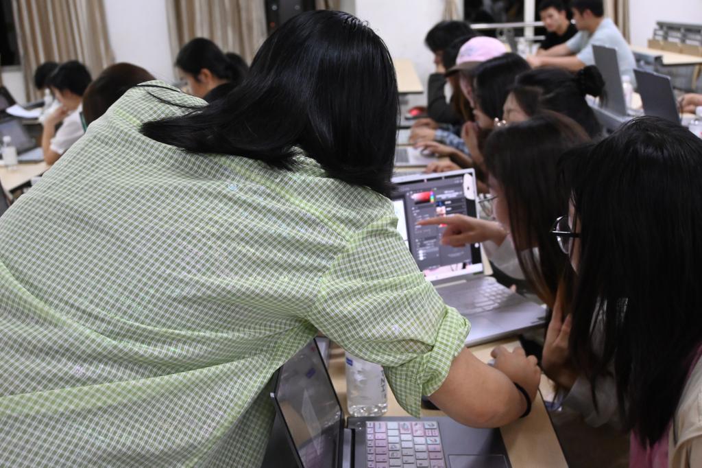 活动伊始,王涛阐明了本次活动目的,随后钟艺蕤从PS软件基础界面和工具介绍入手,用通俗易懂的语言讲解PS技术知识。在实践环节中,同学们积极动手操作,互相交流讨论,钟艺蕤也为同学们答题解惑,提供一对一指导。