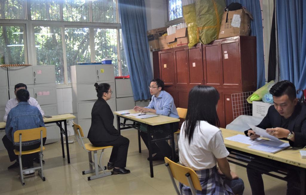 招聘会上,肖宇从衣食住行、公积金、工作环境、工作时间等方面详细介绍农行福利及待遇,针对同学们以后在工作上可能遇到的问题提出应对办法,随后现场依次面试。